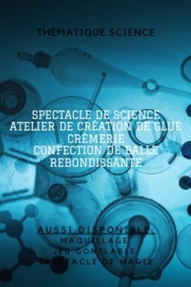 Selon l’horaire que vous désirez.Nous explorerons la magie de la science sous plusieurs formes manuellement et à travers un spectacle, par l'entremise de diverses expériences, toutes plus renversantes les unes que les autres.